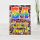 La façade de cette carte de voeux d'anniversaire colorée, rustique et d'automne comporte un grand nombre de "54" ayant un motif inspiré par un gradient de spectre arc-en-ciel. Il comporte également le message "Joyeux 54e anniversaire", et un nom personnalisé. L'arrière - plan de l'avant de la carte présente une chute rustique feuilles automne motif. L'intérieur comporte un message de voeux d'anniversaire modifiable, ou peut-être pourrait-il être effacé et laissé vide si un message doit être écrit à la main à la place. Une carte d’anniversaire personnalisable comme celle-ci pourrait être une façon amusante d’envoyer un message pour célébrer le cinquante-quatrième anniversaire de quelqu’un. [~Z0000384]