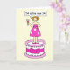 Une dame de bande dessinée debout sur un gâteau d'anniversaire géant, tenant un cocktail et disant '54 est le nouveau 34'.