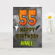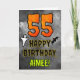 Le devant de cette carte de voeux d'anniversaire à thème Halloween éffrayant et effrayant comporte un grand nombre de "55" et le message "HAPPY BANTHDAY,", ainsi qu'un nom personnalisable. Il y a aussi des représentations d'une chauve-souris et d'un fantôme sur le devant. L'intérieur comporte un message de voeux d'anniversaire modifiable, ou peut-être pourrait-il être effacé et laissé vide si un message doit être écrit à la main à la place. Une carte d'anniversaire personnalisée comme celle-ci pourrait être une façon amusante d'envoyer des voeux d'anniversaire à quelqu'un qui célèbre son cinquante-cinquième anniversaire et qui est également né à Halloween (31 octobre). [~Z0000547]