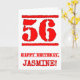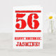 Cette carte de voeux amusante à thème d'anniversaire comporte un grand numéro rouge "56" ayant un look inspiré par un tampon, ainsi que le message de voeux d'anniversaire "HAPPY BANTHDAY", et un nom modifiable sur le devant. L'intérieur a un message de voeux d'anniversaire personnalisable, ou peut-être peut-être être effacé et laissé vide si un message doit être écrit à la main à la place. Une carte de voeux d'anniversaire amusante et modifiable comme celle-ci pourrait être une façon amusante de transmettre des voeux d'anniversaire à quelqu'un qui célèbre son cinquante-sixième anniversaire. [~Z0000524]