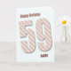 Une carte de 59ème anniversaire très moderne. Cette carte est vraiment fabuleuse. Grandes lettres à rayures modernes sur un arrière - plan bleu. Personnaliser pour votre propre message unique.