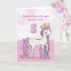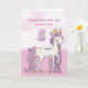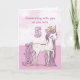 Un doux poney rose rien que pour une fille spéciale qui caracole avec le numéro cinq ! Des détails dorés sont tissés dans sa crinière et sa queue. Carte parfaite pour souhaiter un joyeux anniversaire à n'importe quelle fille pour son 5e anniversaire !