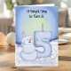 Celebrate a child’s fifth birthday with this delightful winter illustration featuring a cheerful snowman proudly admiring the big snowy “5” he has just built. Snowballs are scattered around the base of the number, adding playful texture to the scene, while soft winter flowers bring a gentle, seasonal touch. The cozy colors and whimsical details make this design perfect for little ones who love winter magic. Add the child’s name at the bottom to create a personalized 5th birthday keepsake families will treasure.