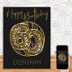 Carte de 60e anniversaire personnalisée avec ballons en papier poster de animal en noir et or. Les ballons empreintes de léopard branchés sont encadrés de confettis noir et or et Happy Birthday est écrit à la main en or. Le modèle est prêt à personnaliser l'avant de la carte et à ajouter un message à l'intérieur - ou vous pouvez laisser l'intérieur vide si vous préférez écrire à la main à l'arrivée.