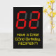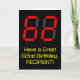 La façade de cette carte de voeux amusante et nerveuse à thème d'anniversaire comporte un grand numéro "62" ayant une apparence rouge à sept segments d'affichage numérique, ainsi que le message "Avoir un grand 62e anniversaire", et un nom personnalisé, sur un arrière - plan de couleur noire. L'intérieur comporte un message de voeux d'anniversaire modifiable, ou peut-être pourrait-il être effacé et laissé vide si un message doit être écrit à la main à la place. Une carte d’anniversaire personnalisée comme celle-ci pourrait être une façon amusante d’envoyer un message pour célébrer le soixante-deuxième anniversaire de quelqu’un. [~Z0000386]