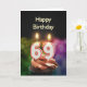 Un gâteau d'anniversaire avec des bougies. Les bougies sont composées du numéro 69, pour un 69ème anniversaire. Une carte d'anniversaire adaptée à tous.