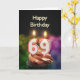 Un gâteau d'anniversaire avec des bougies. Les bougies sont composées du numéro 69, pour un 69ème anniversaire. Une carte d'anniversaire adaptée à tous.