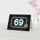 Panneau de néon brillant avec une étoile sur un mur de la ville en briques foncées pour 69ème anniversaire.