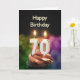 Un gâteau d'anniversaire avec des bougies. Les bougies sont composées du numéro 70, pour un 70ème anniversaire. Une carte d'anniversaire adaptée à tous.