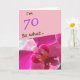 Une grande carte de voeux pour elle, célébrant le 70e anniversaire. Il est livré avec une citation drôle I`m 70 alors quoi... avec une photo d'une belle orchidée rose, et est parfait pour une personne avec un sens de l'humour.