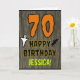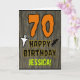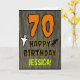 Le recto de cette carte de voeux Hallowe'en à thème d'anniversaire effrayant et éffrayant comporte un grand numéro "70" et le message "HAPPY BANTHDAY,", ainsi qu'un nom personnalisable. Il y a aussi des représentations d'une chauve-souris et d'un fantôme sur le devant. L'intérieur comporte un message de voeux d'anniversaire modifiable, ou peut-être pourrait-il être effacé et laissé vide si un message doit être écrit à la main à la place. Une carte d’anniversaire personnalisable comme celle-ci pourrait être une façon amusante de reconnaître le soixante-dixième anniversaire de quelqu’un qui tombe aussi le 31 octobre (Halloween). [~Z0000410]