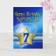 Une grande étoile dorée brillante dans laquelle vous pouvez mettre le nom du garçon d'anniversaire. L'arrière - plan est bleu avec de beaux tourbillons blancs.