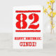 Ce design amusant de carte de voeux d'anniversaire comporte un grand numéro rouge "82" avec un look inspiré par un tampon en caoutchouc, en plus du message de voeux d'anniversaire "HAPPY BANTHDAY", et un nom personnalisé sur le devant. L'intérieur a un message de voeux d'anniversaire personnalisé, ou peut-être peut-être être effacé et laissé vide si un message doit être écrit à la main à la place. Une carte de voeux d'anniversaire personnalisée et amusante comme celle-ci pourrait être une façon amusante de transmettre des voeux d'anniversaire à quelqu'un qui célèbre son quatre-vingt-deuxième anniversaire. [~Z0000524]