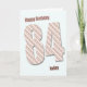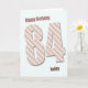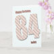 Une carte de 84ème anniversaire très moderne. Cette carte est vraiment fabuleuse. Grandes lettres à rayures modernes sur un arrière - plan bleu. Personnaliser pour votre propre message unique.