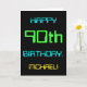 Cette carte de voeux d'anniversaire simple et amusante comporte un message comme "HAPPY 90th BANTHDAY, MICHAEL!". Il présente également une apparence amusante inspirée de l'informatique numérique. Le nom à l'avant et le message à l'intérieur peuvent être customisés. Il pourrait être envoyé ou donné à quelqu'un qui fête son quatre-vingt-dixième anniversaire, et qui peut-être travaille comme programmeur informatique, développeur de logiciels, administrateur de base de données, administrateur de réseau, ingénieur électronique, ou qui aime autrement utiliser des ordinateurs. [~Z0000100]