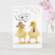De mignons canards jaunes avec bulle vocale et confettis de fête sur un arrière - plan blanc pour 90ème anniversaire. Le canard porte une ficelle de perles et un bonnet. Le petit canard porte une cravate rayée. Tout le texte peut être modifié. L'âge est modifiable. La couleur Arrière - plan peut être modifiée.