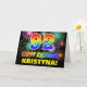 La façade de cette carte de voeux d'anniversaire colorée, amusante et joyeuse comporte un grand nombre de "92" et le message "HAPPY BANTHDAY", tous deux colorés par un motif inspiré par un gradient de spectre arc-en-ciel, ainsi qu'un nom de destinataire modifiable jaune gras. Le front est également orné d'un feu d'artifice de célébration multicolore inspiré par un motif arrière - plan. L'intérieur comporte un message de salutation d'anniversaire customisé, ou peut-être pourrait-il être effacé et laissé vide si un message doit être écrit à la main à la place. Une carte d’anniversaire colorée et personnalisée comme celle-ci pourrait être une façon amusante de reconnaître le quatre-vingt-douzième anniversaire de quelqu’un. [~Z0000471]