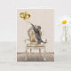 Chat de tabby gris avec ballons de feuille d'or sur une chaise à l'ancienne pour 96ème anniversaire.
