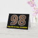 La façade de cette carte de voeux rustique et amusante d'anniversaire avec un grand numéro "98" avec une imitation motif de style à grain de bois, avec le message "Happy 98th Birthday," et un nom personnalisable. L'intérieur comporte un message de voeux d'anniversaire customisé, ou peut-être pourrait-il être effacé et laissé vide si un message doit être écrit à la main à la place. Une carte d'anniversaire personnalisée comme celle-ci pourrait être une façon amusante d'envoyer des voeux d'anniversaire à quelqu'un qui fête son quatre-vingt-dix-huitième anniversaire. [~Z0000431]
