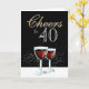 Carte d'anniversaire 40 ans, vin rouge élégant. Deux verres à vin rouge, typographie tendance en blanc et or sur fond noir. Personnalisez le numéro d'âge.