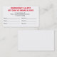 Ce carte de visite est imprimé avec l'alerte de secours des textes : Mon chien est seul à la maison. Il fournit un endroit pour ajouter des noms du contact ou des numéros de téléphone de personnes qui s'inquiéteront de votre chien si vous êtes blessés ou frappés d'incapacité. La carte est conçue pour être portée dedans votre portefeuille et peut être customisée en complétant les noms et les numéros de téléphone. Elle est parfaite pour que le propriétaire de chien prévoie en avant dans ainsi le personnel de secours satisfera à vos souhaits.