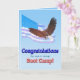 Félicitations pour l'achèvement du camp de botte Un beau paysage de montagne avec un aigle chauve volant dans le ciel. Ajoutez un nom pour personnaliser cette carte.