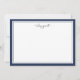 Nos cartes à plat personnalisées et chic ont une bordure bleu marine classique avec votre nom ou choix de personnalisation qui suit le haut en lettres de caractères modernes gris charbon de bois. Cartes inversées à la marine horizontale et bandes blanches.