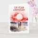 Sur votre carte Anniversaire - Une belle image d'un couple marchant le long de la plage, une pleine lune dans un ciel rouge et rose. L'océan lèche doucement le rivage. A l'intérieur, le message dit : "Que votre amour continue à se renforcer chaque jour !"