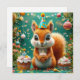 Un écureuil de charme en casquette festif, entouré de décorations vibrantes et de cupcakes colorés, dans un cadre ludique et gai.