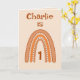 Ce design arc-en-ciel doux peut être personnalisé avec le nom et l'âge. Jolie Pêche, Orange & couleur crème. Le verset intérieur peut être conservé, modifié ou supprimé en suivant l'invite "personnaliser".