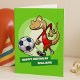 Une carte d'anniversaire colorée pour un fan de football avec un joueur de gecko amusant et mignon bottant la balle. Utilisez "Personnalisez ce modèle" pour modifier le nom ou le texte "HAPPY BANTHDAY WILLIAM !" et créer une carte unique et customisée.