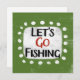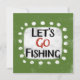 "Let's Go Fishing" est un design de texte mignon avec un accent blanc entouré de points blancs texturés.