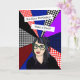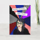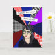 Carte d'amitié humoristique amusante pour dire Joyeux anniversaire. Jolie fille gothique aux cheveux bleus et arrière - plan pop art rétro.