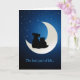 "La meilleure partie de la vie... est de la partager avec quelqu'un que vous aimez" Carte de voeux d'amour et d'amitié avec l'illustration mignonne d'un chaton et d'un chiot assis ensemble sur la lune regardant le ciel étoilé. Il peut être utilisé pour diverses occasions et vous pouvez le personnaliser avec votre propre texte personnalisé.