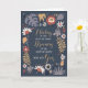 Soyez romantique et envoyez une note d'amour à cette personne spéciale que vous aimez en choisissant cette carte avec un arrière - plan gris-bleu parsemé de feuilles tropicaux et d'éléments floraux audacieux, le tout dans des teintes orange foncé, blanc cassé, lavande et jaune doré.