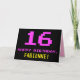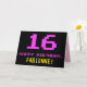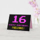 Le devant de cette carte de voeux d'anniversaire amusant, geek et nerdy comporte un grand numéro "16" et le message "HAPPY BANTHDAY", rose coloré, avec un nom de destinataire jaunâtre personnalisable. Le texte a un aspect inspiré de celui de 8 bits de style vintage d'ordinateur/jeux vidéo des années 1970 et 1980, et l'arrière - plan est coloré en noir. L'intérieur a un message de voeux d'anniversaire customisé, ou peut-être peut-être être effacé et laissé vide si un message doit être écrit à la main à la place. Une carte d’anniversaire personnalisée comme celle-ci pourrait être une façon amusante de célébrer le seizième anniversaire de quelqu’un. [~Z0000478]