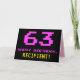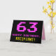 Le devant de cette carte de voeux amusante, nerveuse et geeky à thème d'anniversaire comporte un grand numéro rose "63", avec le message "HAPPY BANTHDAY," en rose, et un nom de destinataire personnalisé jaune gras. Le texte présente un look inspiré de celui des graphismes classiques de jeux vidéo et d'ordinateur 8 bits des années 1970 et 1980, et l'arrière - plan est noir de couleur. L'intérieur a un message de voeux d'anniversaire personnalisable, ou peut-être peut-être être effacé et laissé vide si un message doit être écrit à la main à la place. Une carte d’anniversaire personnalisable comme celle-ci pourrait être une façon amusante de célébrer le soixante-troisième anniversaire de quelqu’un. [~Z0000478]