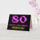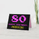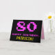 Le devant de cette carte de voeux d'anniversaire amusant, nerdy et geeky comporte un grand numéro rose "80", ainsi que le message "HAPPY BANTHDAY," en rose, et un nom de destinataire jaune gras personnalisable. Le texte a un look inspiré de celui de jeux vidéo et de jeux vidéo de style 8 bits classiques des années 1970 et 1980, et l'arrière - plan est noir de couleur. L'intérieur a un message de voeux d'anniversaire modifiable, ou peut-être peut-être être effacé et laissé vide si un message doit être écrit à la main à la place. Une carte d’anniversaire personnalisée comme celle-ci pourrait être une façon amusante d’envoyer un message pour célébrer le quatre-vingtième anniversaire de quelqu’un. [~Z0000478]