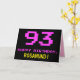 Le devant de cette carte de voeux amusante, nerveuse et geeky à thème d'anniversaire comporte un grand numéro "93" et le message "HAPPY BANTHDAY," couleur rose, avec un nom de destinataire jaune gras personnalisable. Le texte a un look inspiré de celui de jeu vidéo 8 bits classique et de graphismes de jeux informatiques des années 1970 et 1980, et l'arrière - plan est noir de couleur. L'intérieur comporte un message de voeux d'anniversaire modifiable, ou peut-être pourrait-il être effacé et laissé vide si un message doit être écrit à la main à la place. Une carte d’anniversaire personnalisable comme celle-ci pourrait être une façon amusante de célébrer le quatre-vingt-treizième anniversaire de quelqu’un. [~Z0000478]