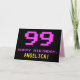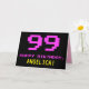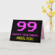 La façade de cette carte de voeux amusante, nerveuse et geeky d'anniversaire avec un grand numéro "99" et le message "HAPPY BANTHDAY", couleur rose, avec un nom de destinataire jaune gras. Le texte a un look inspiré de celui de jeux vidéo et de jeux vidéo de style 8 bits classiques des années 1970 et 1980, et l'arrière - plan est noir de couleur. L'intérieur comporte un message de voeux d'anniversaire personnalisable, ou peut-être pourrait-il être effacé et laissé vide si un message doit être écrit à la main à la place. Une carte d’anniversaire personnalisée comme celle-ci pourrait être une façon amusante de célébrer le quatre-vingt-dix-neuvième anniversaire de quelqu’un. [~Z0000478]
