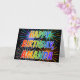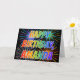 Ce design de carte vibrant, multicolore et d'amusement d'anniversaire de salutation comporte le message "JOYEUX ANNIVERSAIRE," et le prénom commun "AMANDA" avec les lettres ayant un spectre coloré d'arc-en-ciel comme le motif de coloration de gradient. L'arrière - plan de l'avant comporte également un motif coloré inspiré par le regard d'éclater les feux d'artifice de célébration. Les caractéristiques intérieures un message personnalisable de salutation, ou pourraient peut-être être dégagées et sont parties du blanc si un message doit être écrit à la main à la place. Une carte de voeux d'anniversaire comme ceci pourrait être une manière d'amusement de reconnaître l'anniversaire de quelqu'un Amanda appelée. [~Z0000350]