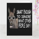 Carte de vœux de l'âne intelligent cool conçue par Nisha Prabhu. Âne intelligent mignon avec des lunettes de soleil cool et un texte ludique « Assez intelligent pour ignorer ce que les autres disent ». Envoyez un sourire avec cette carte de vœux de l'âne intelligent cool ! Illuminez la journée de quelqu'un avec cette charmante carte de vœux avec un design d'âne intelligent cool. Que vous célébriez un anniversaire, envoyiez des vœux de rétablissement ou simplement disiez bonjour, cette carte est parfaite pour toutes les occasions. Le graphisme ludique et les couleurs vives font de cette carte un choix exceptionnel pour ceux qui apprécient une touche de fantaisie. Imprimée sur du papier cartonné de haute qualité avec une finition lisse, cette carte de vœux dégage à la fois du style et de la durabilité. Avec suffisamment d'espace à l'intérieur pour votre message personnel, cette carte de l'