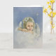 Ange de Noël. Peinture à l'huile de l'artiste Liz Viztes. Un ange repose sur des nuages moelleux sous l'étoile scintillante de Bethléem dans le ciel bleu serein au-dessus. Elle regarde attentivement en attendant la célébration de la naissance de Jésus. Carte de vacances pour 2024.