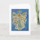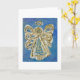 Peinture d'un ange blanc et or sur contre un arrière - plan bleu doux.