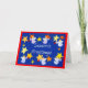 Une carte de Noël lumineuse et joyeuse avec six petits anges, occupé à polir les étoiles, prêt pour Noël, d'un collage de papier peint à la main par Judy Adamson. L'accueil, en lettres blanches sur un arrière - plan bleu foncé, est 'Bonnes Fêtes et l'intérieur est laissé vide pour votre propre message.