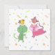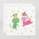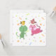 carte de voeux carrée pour les enfants à deux poupées, avec des oiseaux sur leur tête et du texte: un bon anniversaire! Le texte peut être modifié.