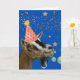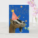 Drôle carte de voeux d'anniversaire tardif avec une chèvre de fête brûlant des bulles vertes. Inside verse "Désolé, je fourrureGOAT votre BURPday. J'espère que votre journée spéciale était unfurGOATable !" Copyright © Shoaff Ballanger Studios, 2022.