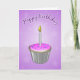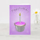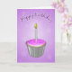 Carte d'anniversaire douce avec un cupcake à la vanille avec glaçage à la fraise et des arrosages bleus pour s'amuser le tout enveloppé dans un emballage en feuille fantaisie. Le texte intérieur est personnalisable. Original © Marianne Gilliand 3d et 2d artwork numérique. Des autocollants correspondants sont disponibles.