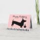Un salut d'anniversaire d'amoureux des chiens. Dachshund avec casquette de fête d'anniversaire et cupcake avec bougie, silhouette design en noir et blanc. Choisissez une couleur arrière - plan comme préférée.