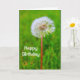 Un pissenlit blanc gonflé, photographié contre l'herbe vert clair, est le sujet de ma "joyeux anniversaire - espoir que c'est DANDE et je ne suis pas carte d'anniversaire de LION" !